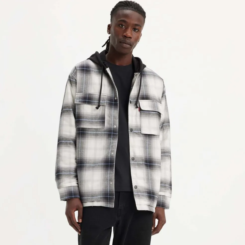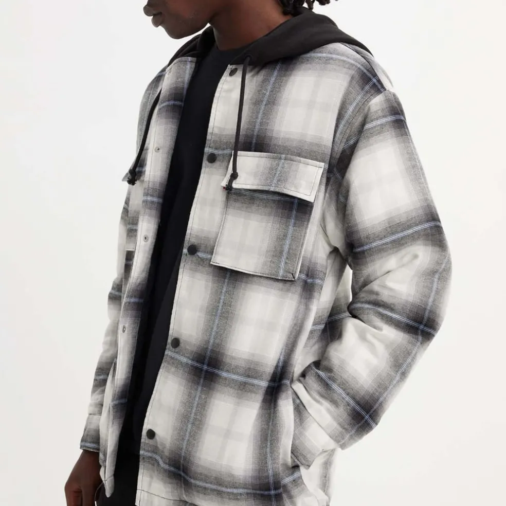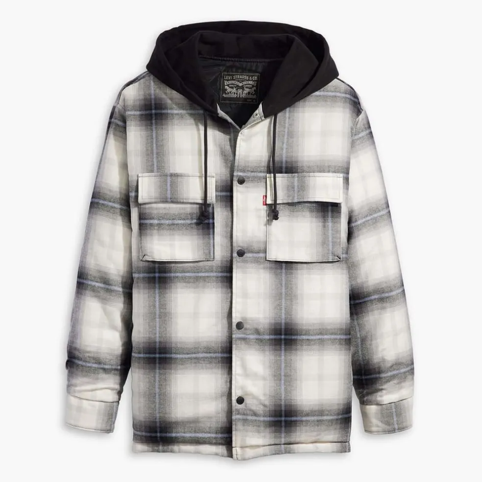 – Contrasting collar with hood.