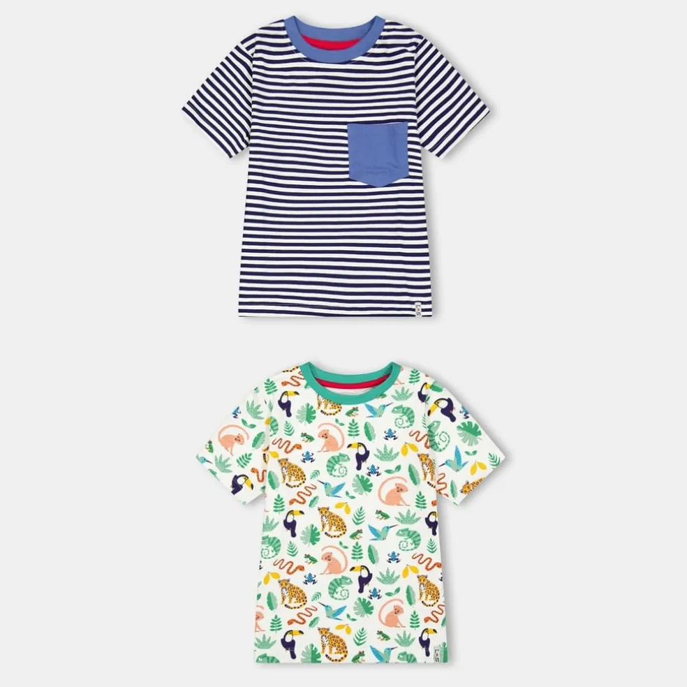 Lilly and Sid And Sid Multicoloured Animal Safari And Stripe Print T-Shirt 2 Pack in Multi