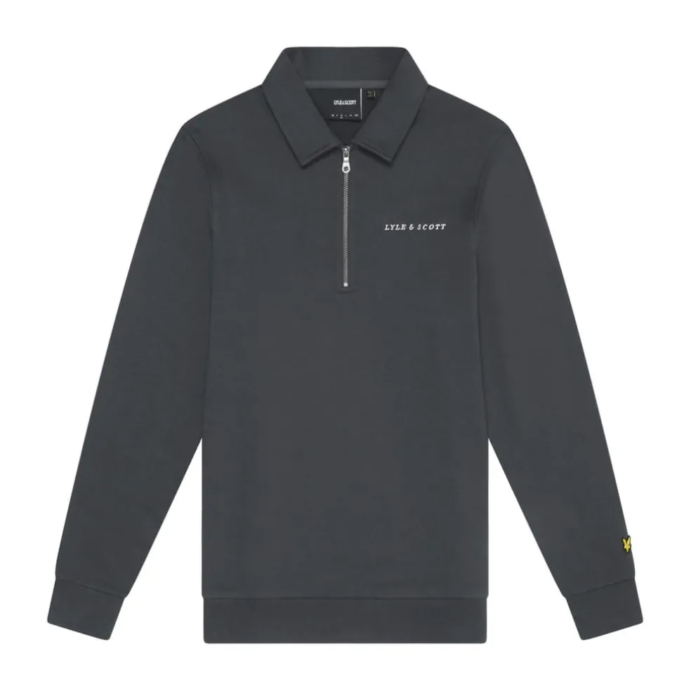 Lyle And Scott Embroidered Collared Quarter Zip Sweatshirt in Gunmetal