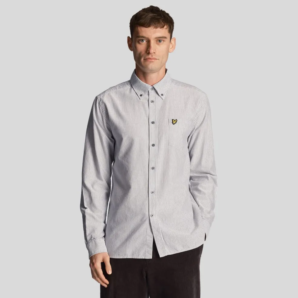 Lyle And Scott Stripe Oxford Shirt in Grey White