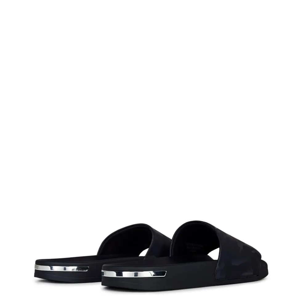 Get summer ready with the Mallet Camouflage Sliders. Crafted from a durable rubber construction, this slip on silhouette styles a solid block colour with a monochromatic camouflage design to the thick strap adorned with an embossed Mallet logo. With a molded footbed for added comfort, this piece styles a silver-toned accent to the heel for a premium touch. Wear this piece with a t-shirt and shorts during the summer or casually around the house.