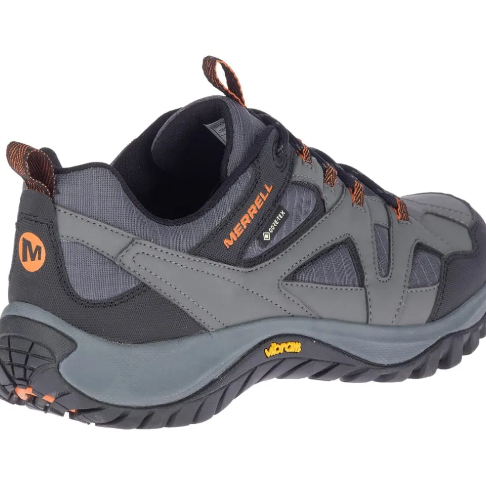 Ideal for all year round use, this low profile silhouette has been designed with a waterproof and breathable Gore-Tex construction. With an arch support to the foot for stability with every step, this pair offer an additional Merrell Air Cushion to absorb impact and shocks. Complete with a full lace fastening, these walking shows are finsihed with subtle Merrell branding.