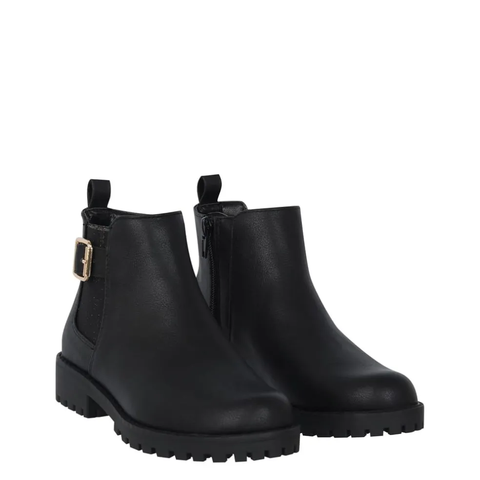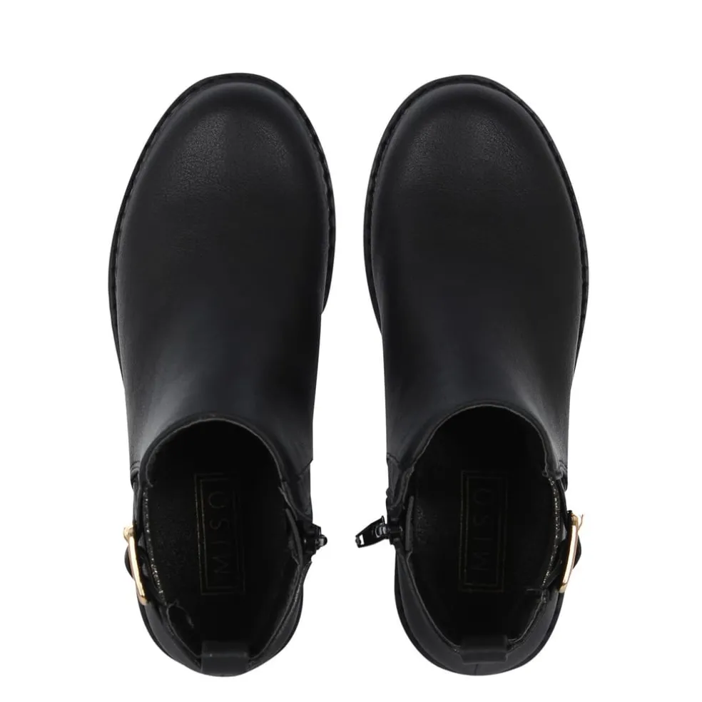 The Kids Miso Cojito Ankle Boots are perfect for when the autumn weather hits, crafted with an inside zip fastening along with an elasticated insert that allows for a secure fit. A buckle and strap detail to the ankle along with a chunky sole gives a stylish touch, completed with the Miso branding.