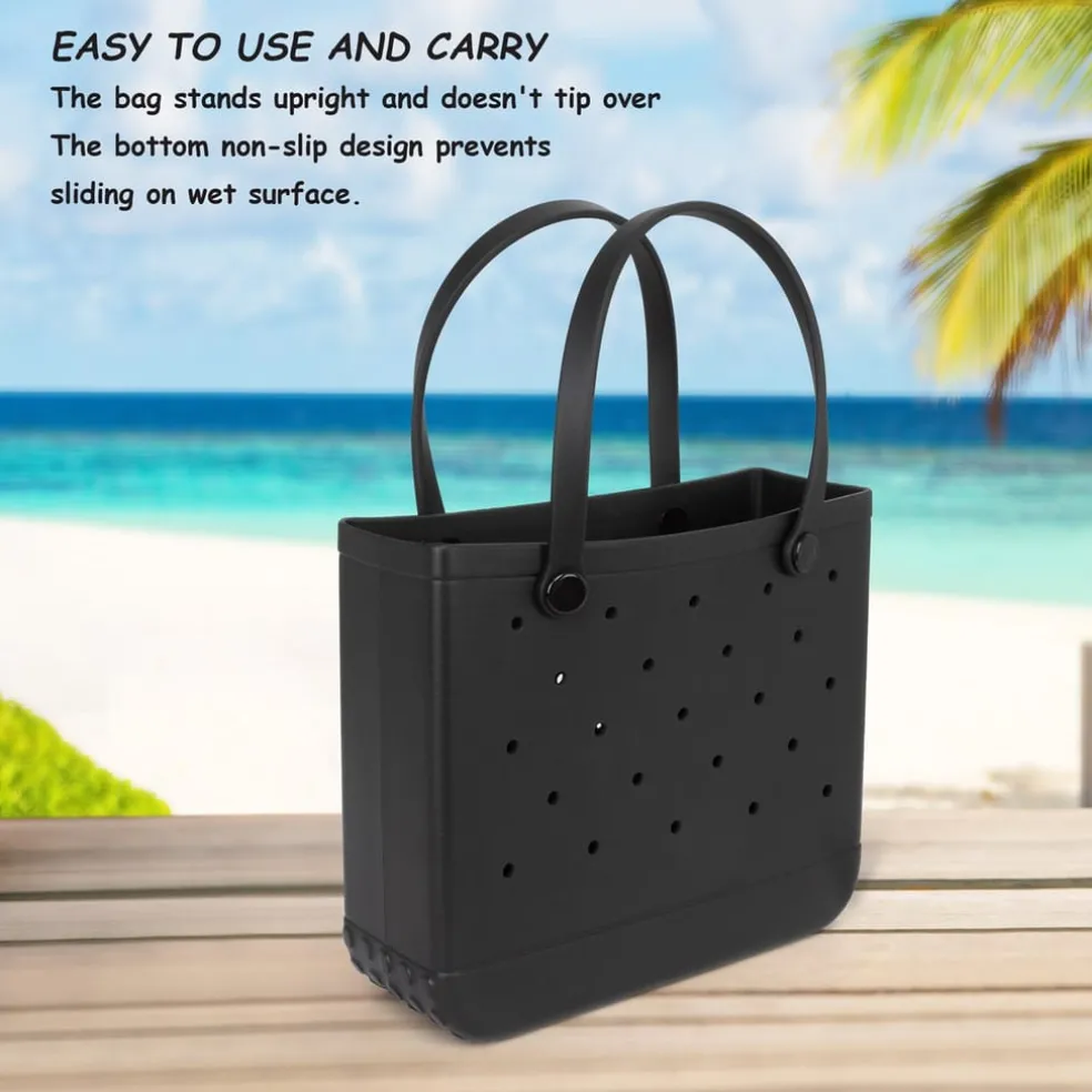 PREMIUM EVA MATERIAL: Our rubber beach bag holdalls are made from lightweight yet strong EVA material, which is unrivalled for its waterproof, abrasion resistance and ease of maintenance to ensure durability.Available in Large (L) ,Medium (M) and Small (S) sizes, there is plenty of room for your beach essentials including towels, blankets, snacks, electronics, flip flops, sunglasses, sunscreen and more.