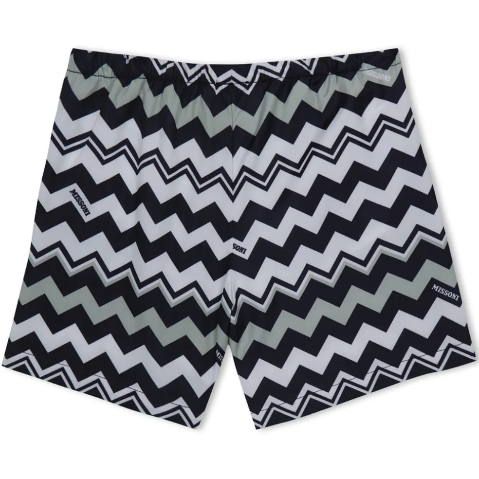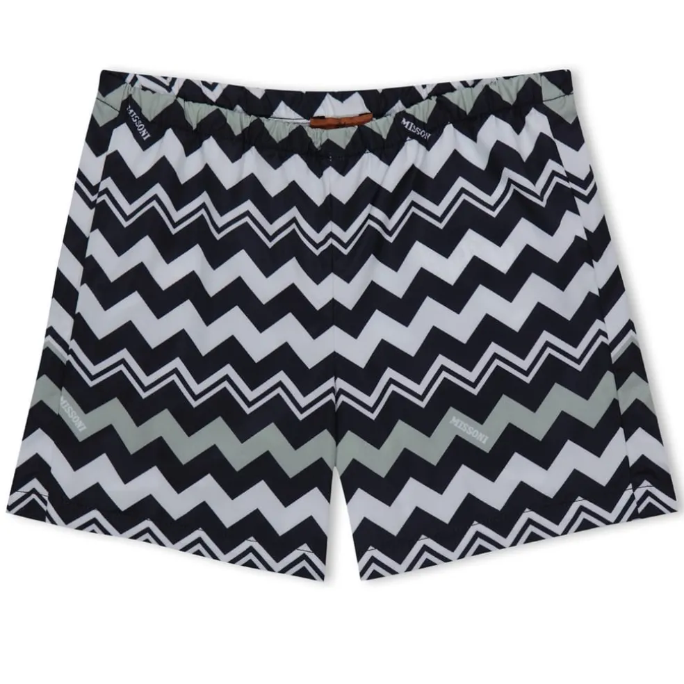 Dive into style with Missoni’s swimwear, featuring a distinctive chevron pattern. This swim bottom is designed for swimming activities and includes a practical drawstring closure for a secure fit. The iconic logo embellishment adds a touch of brand recognition, making it a standout piece in any swimming collection.