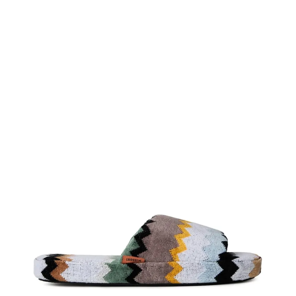 Discover the Missoni slippers, a stylish addition to any shoe collection. These shoes feature Missoni signature chevron pattern, offering a unique aesthetic. Perfect for those who appreciate fine craftsmanship and unique designs, these slippers blend comfort with a distinctive fashion statement.