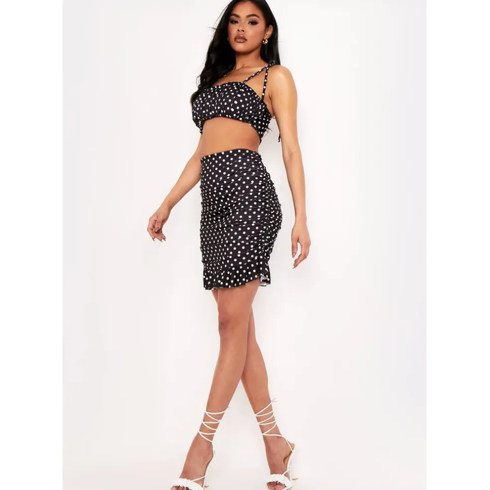 Missy Empire Dot Frill Hem Mini Skirt in Black