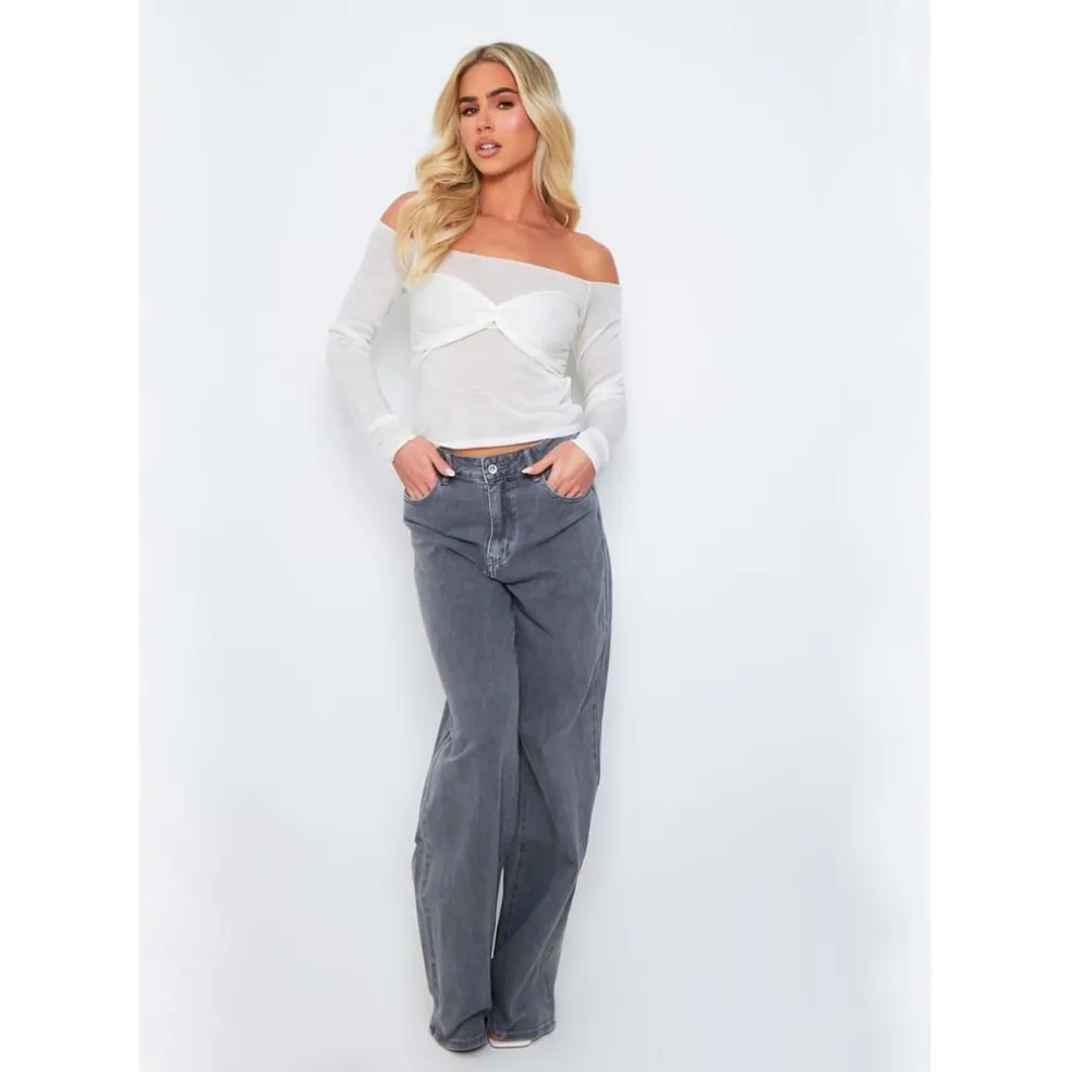 Missy Empire Knit Overlay Bralet Jumper in Cream