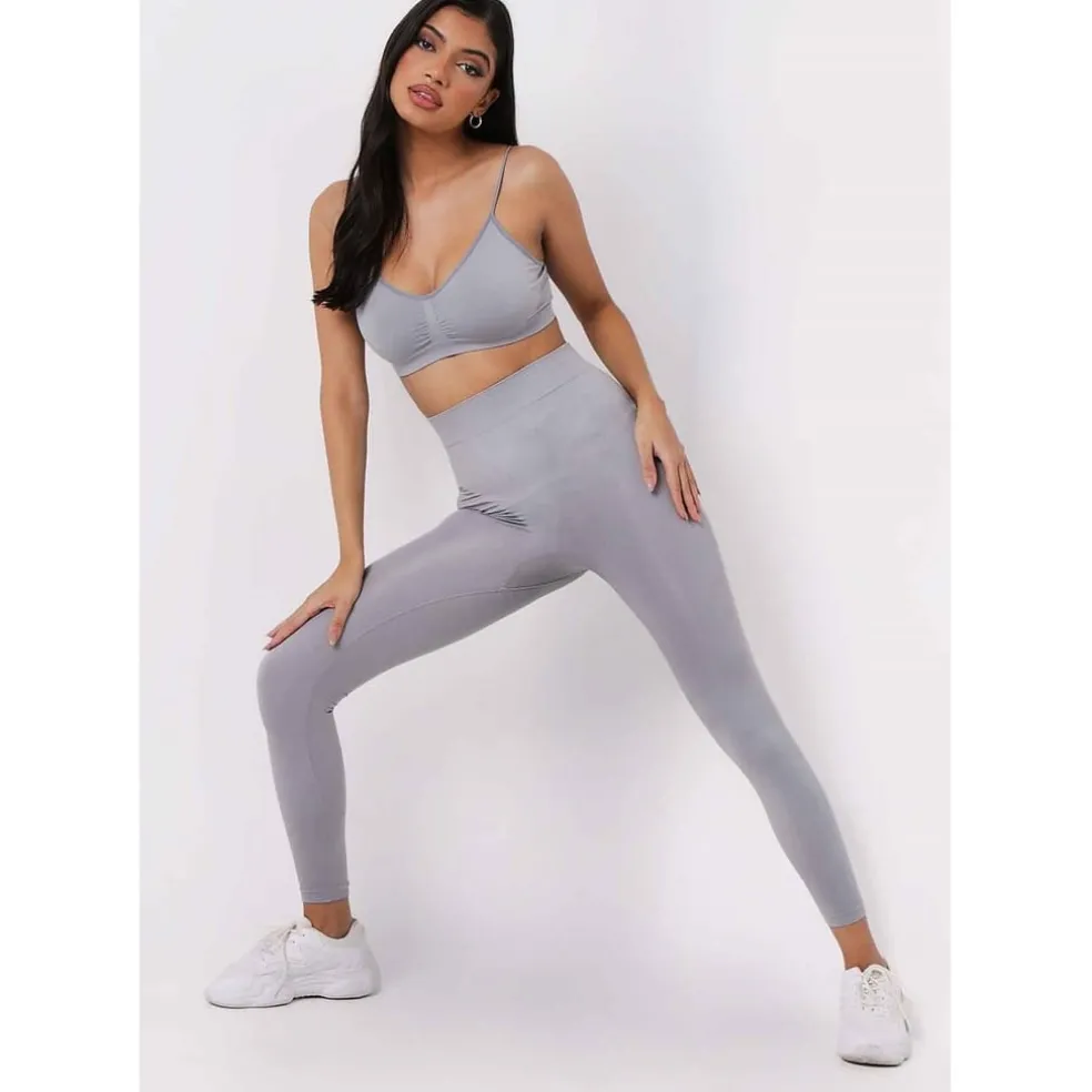 Missy Empire Waisted Body Sculpting Seamless Leggings in Grey
