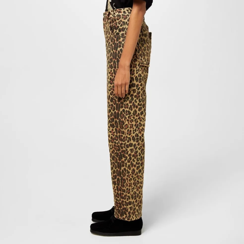 – Embellished with delicate scalloped pockets these jeans redefine femininity in a comfortable yet chic manner. The wide-leg silhouette ensures a flattering fit, complementing both sneakers and heels effortlessly. These jeans come in a leopard print pattern and are characterised by the signature embroidered logo on the back pocket. Whether you opt for a refined look by tucking in a tee to highlight the exquisite pocket details or prefer a more laid-back vibe by sizing up for a hip-slung aesthetic, these jeans offer versatility at its finest.