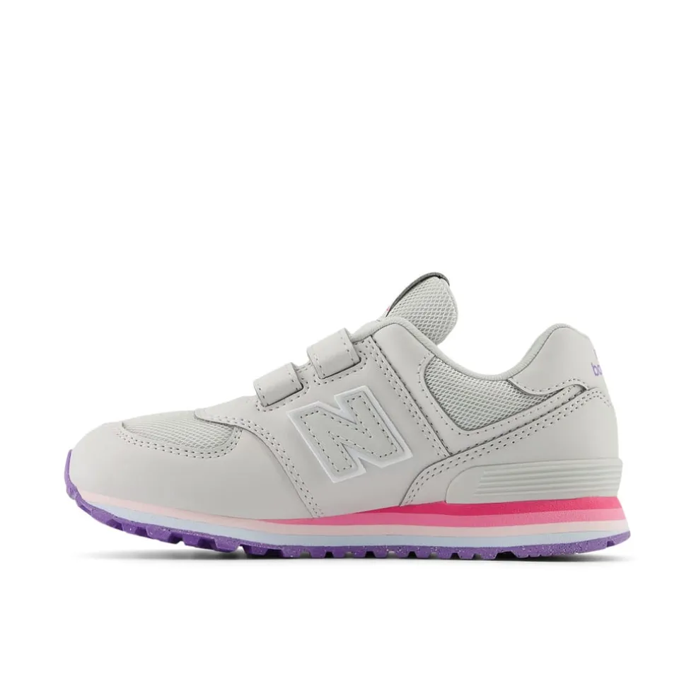 Junior New Balance 574 Trainers in grey matter / signal pink.