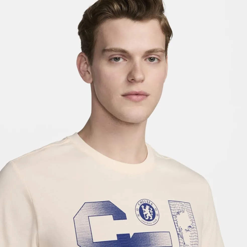 – The classic short sleeves and crew neckline provide a timeless look, while the striking off-white colourway and eye-catching Chelsea graphic printed on the front make a bold statement. The inclusion of the iconic Nike Swoosh further reflects your allegiance to both style and sport. Whether you’re headed to the match or cheering from home, the Chelsea Futura T-shirt is an essential piece for any fan looking to represent their team with flair and passion.
