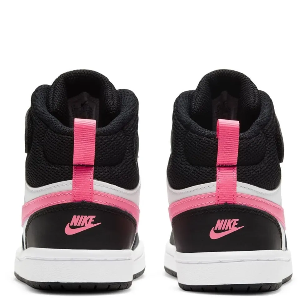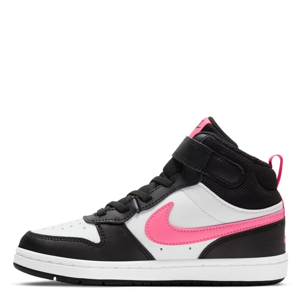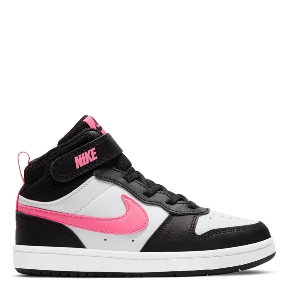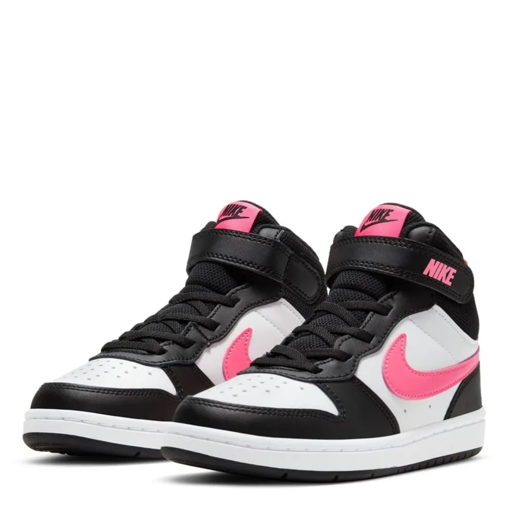 Your little one will feel like an all-star off the court with the Nike Court Borough Mid 2. The classic mid-top design features durable leather for a premium look and feel. A hook-and-loop strap makes it easy to take the shoe on and off.