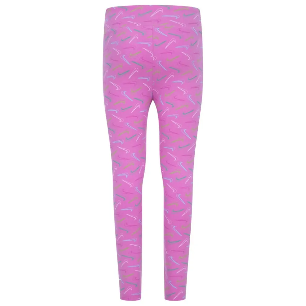 Elasticated waistband.Dynamic Design: Embellished with a trendy swoosh logo, these leggings manifest style with a playful twist.High-quality Material: Crafted from premium fabric, they offer ultimate comfort for all her daily activities, making it a must-have for her collection.Vibrant Shade: The eye-catching pink colour encapsulates femininity and liveliness, imparting a sassy edge.