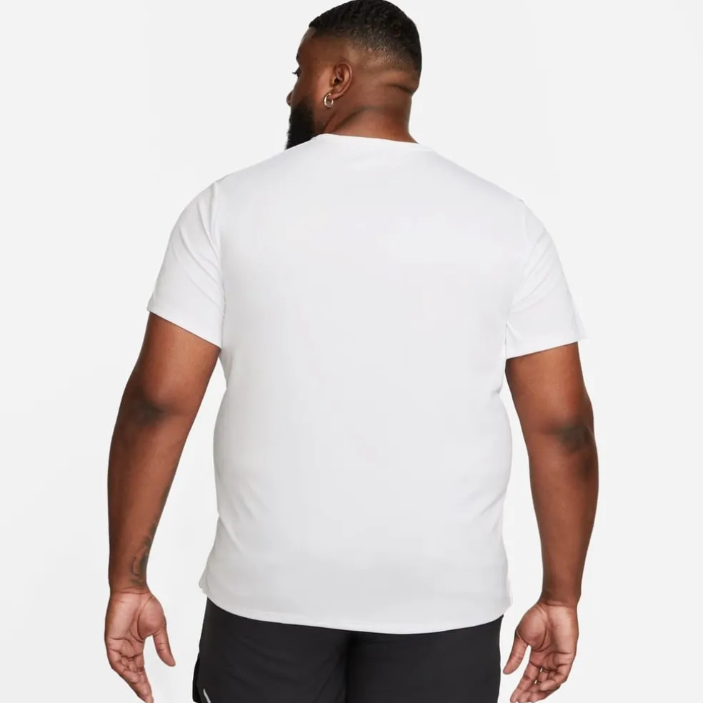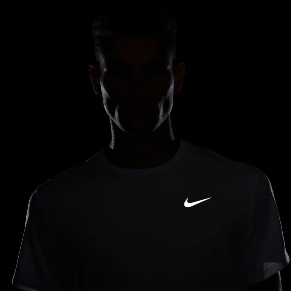 This Nike DriFit Miler Running Top has been designed to provide a comfortable wear when running. The design features a crew neck, short sleeves and lightweight fabric that is breathable, while DriFit technology moves sweat away from the skin for a lighter fresher feel. The shirt has flat lock seams to reduce irritation and is completed with reflective details plus the classic Nike Swoosh for an instant sports vibe. Please note: The style you receive may vary from the image shown.