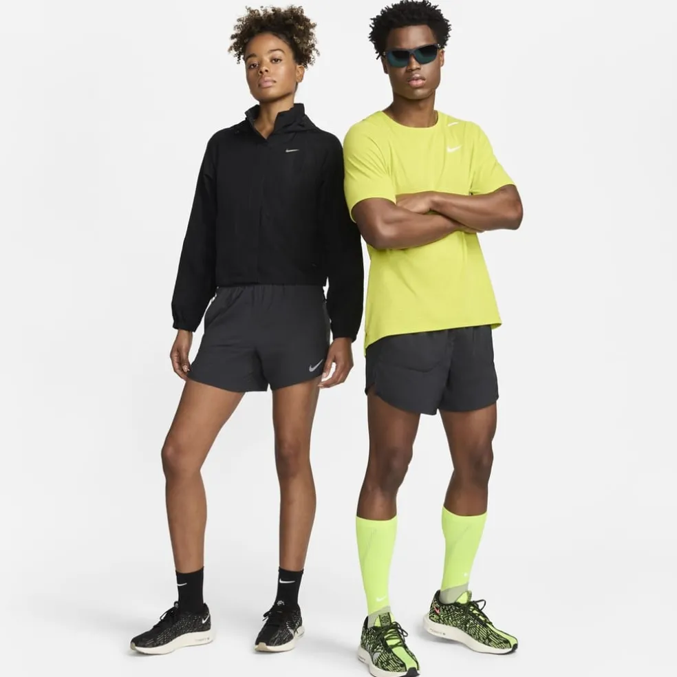 Nike stride shorts are designed for performance, featuring a solid pattern and reflective accents. Part of the activewear collection, these athletic shorts include a drawstring closure for a secure fit. Embellished with a logo and pockets, they offer both style and functionality for your active pursuits.