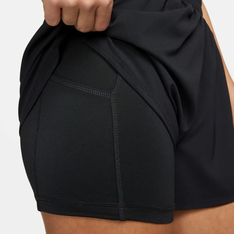 Be ready for anything in the Nike 2 in 1 Woven Shorts. These lightweight, ladies shorts feature a breezy outer with an inner supportive, compression short for added movement. Crafted with Dri-Fit Technology and Nike Flex fabrics provides that added stretch to your movement, whilst moving sweat away from the skin. Comfortable yet durable, take a step forward in the statement shorts featuring a Nike swoosh, from one of your favourite brands.