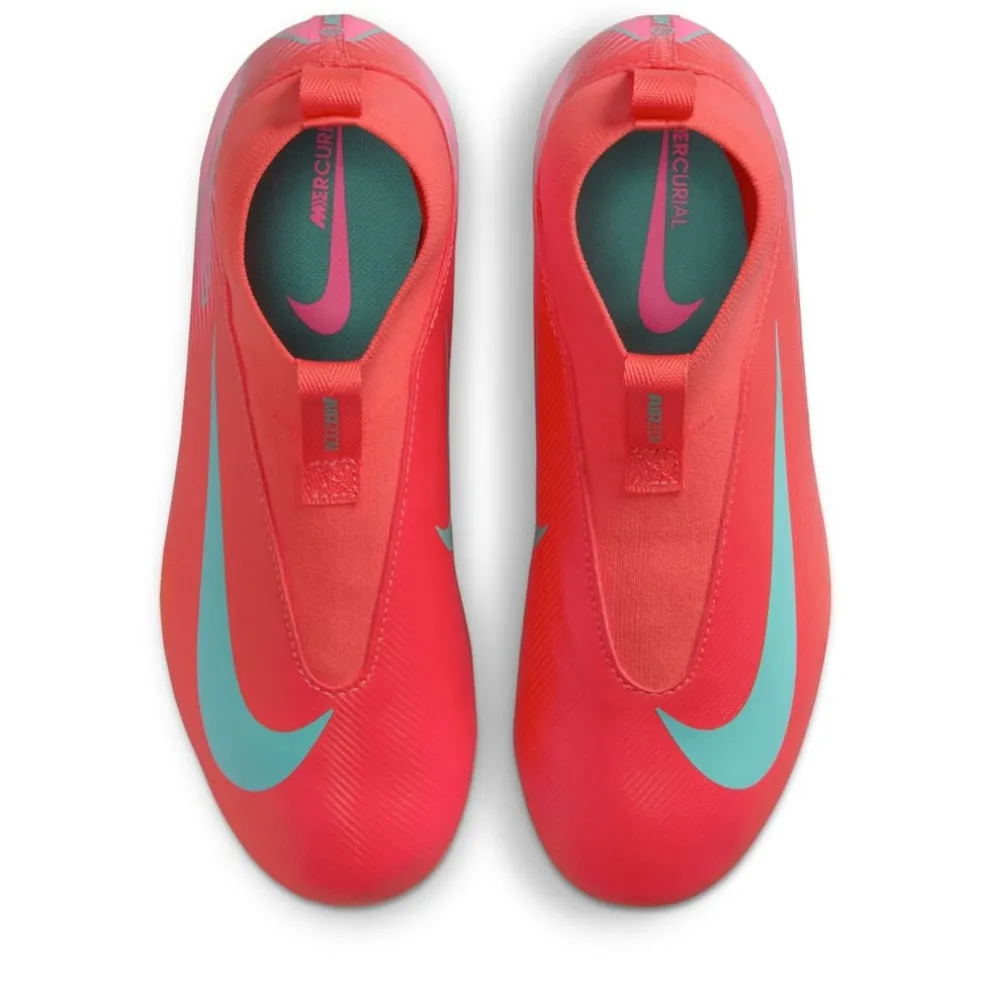 – The Dynamic Fit collar secures their ankle in a soft, stretchy embrace, ensuring stability and confidence in every stride. Designed for artificial ground surfaces, these boots feature pull tabs and a strap for hassle-free on-field action, while the wave-like traction pattern with cascading studs maximises grip and engagement for unstoppable moves.