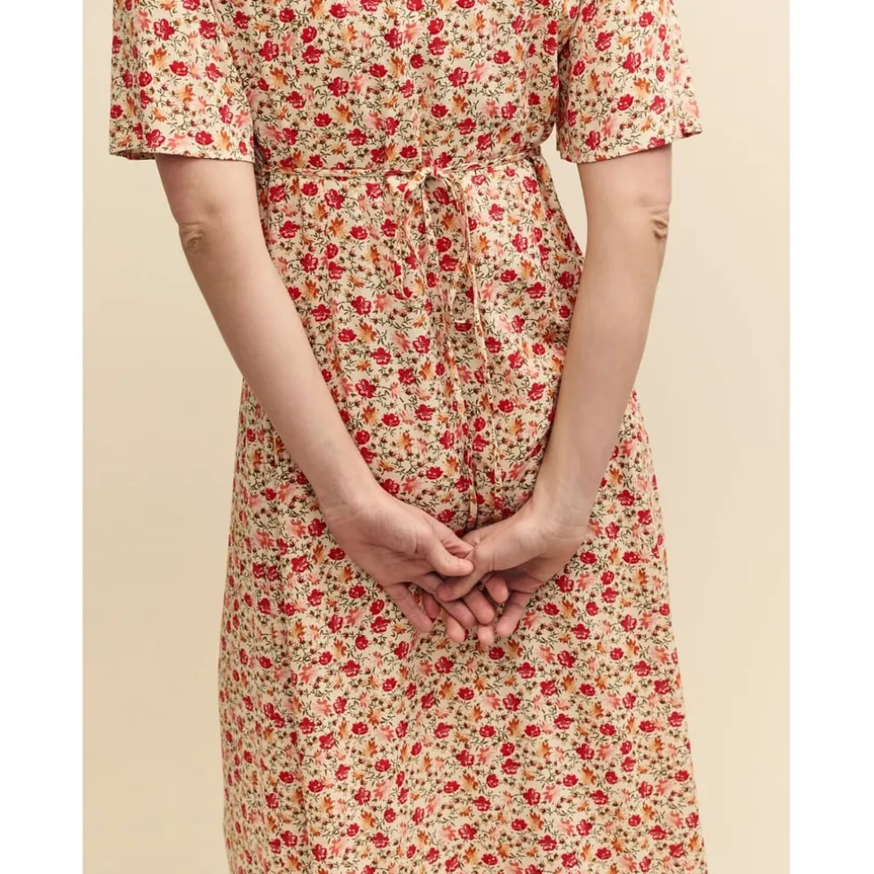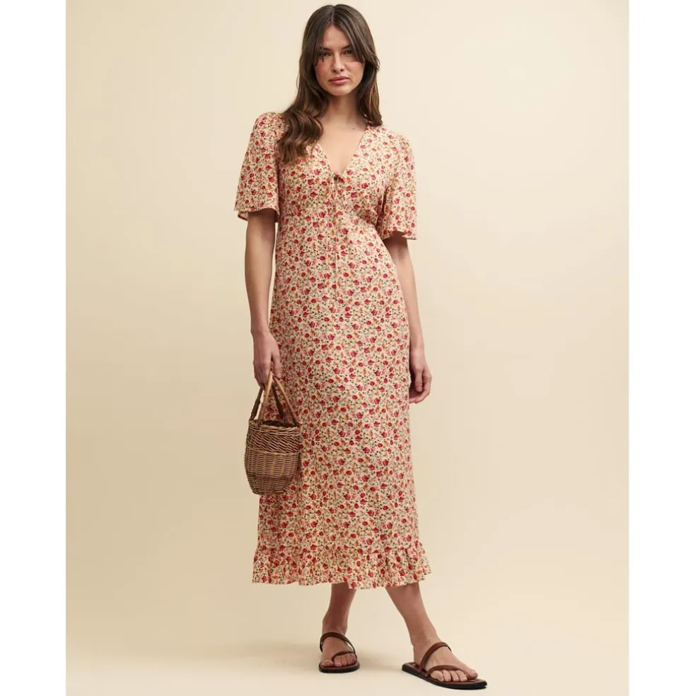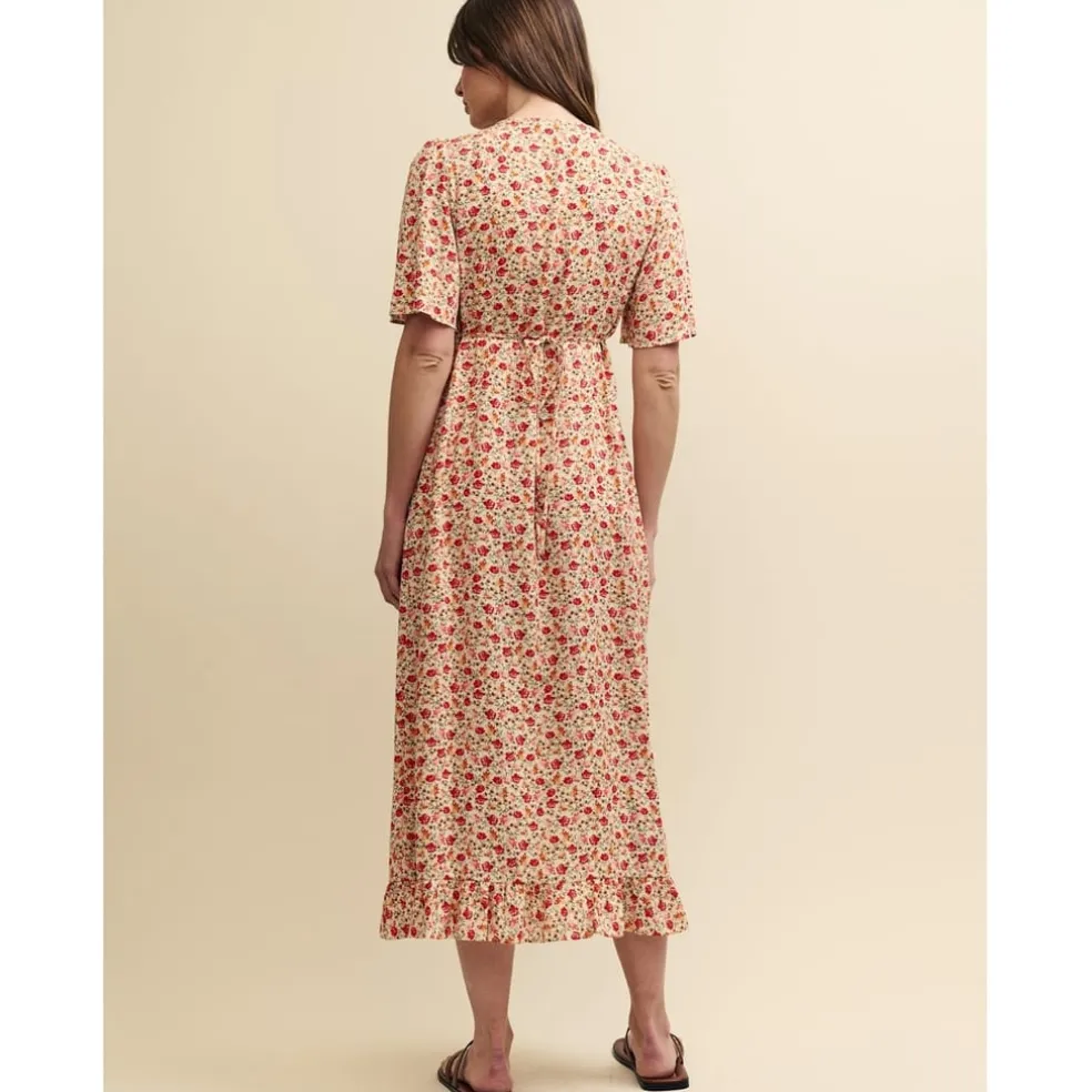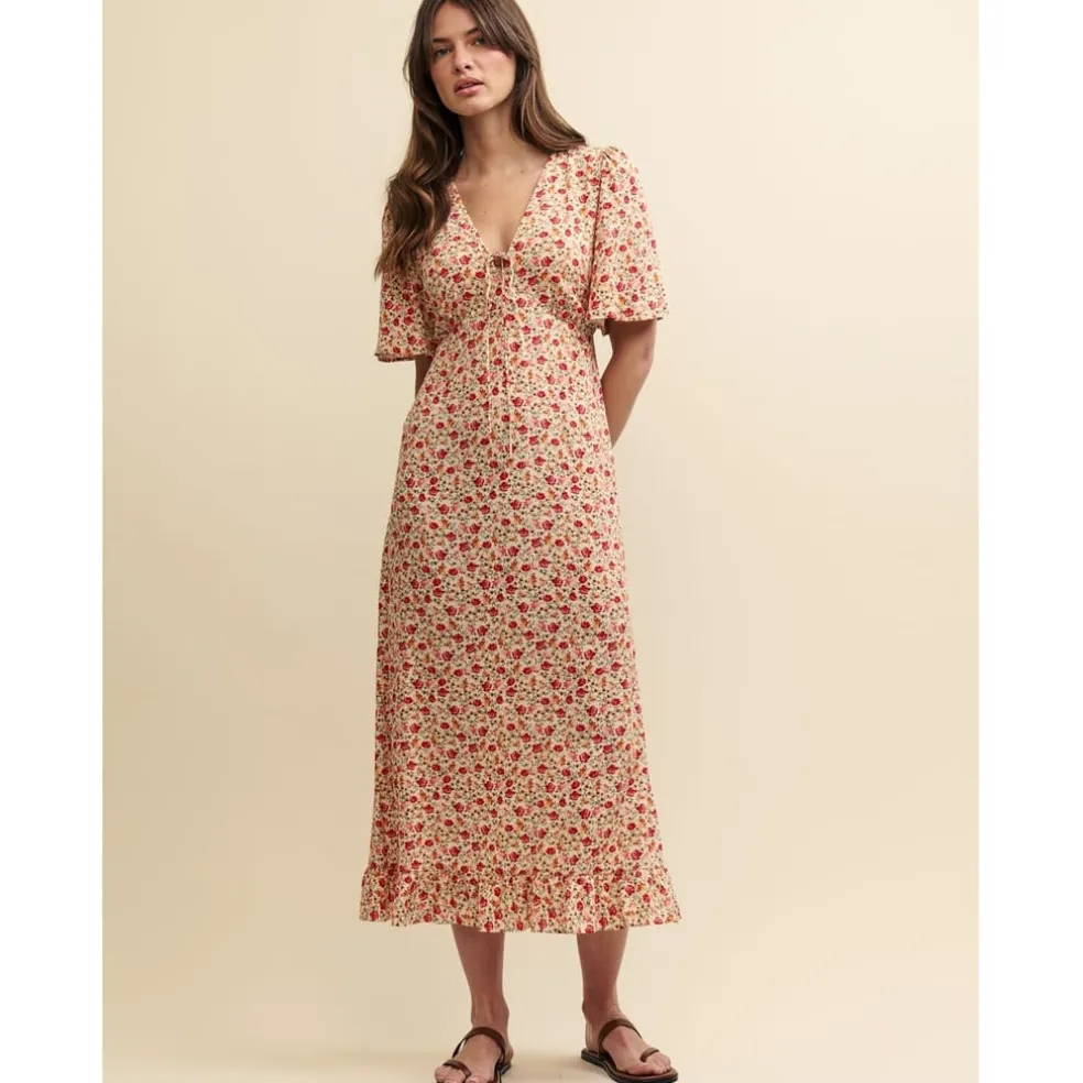 Nobodys Child Dalia V-Neck Midi Dress in Cream