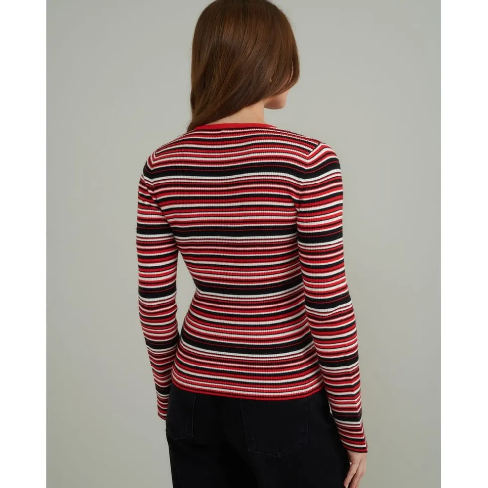 Lauren by Ralph Lauren Stripe Regular Fit Long Sleeve Shirt in Red