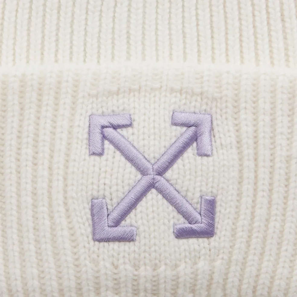The Off-White beanie is a stylish knit accessory featuring a ribbed pattern. This hat is adorned with embroidered details, adding a touch of sophistication to its design. Perfect for those seeking a blend of fashion and function, this beanie offers both warmth and a contemporary look.