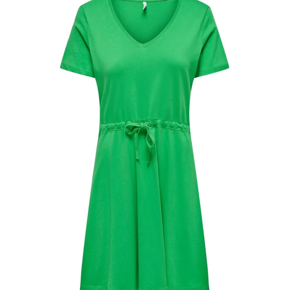 The Only May mini dress is a stylish choice for casual outings. Featuring a solid pattern, this t-shirt style dress comes with a flattering V-neck and short sleeves. The drawstring closure adds a touch of practicality, making it easy to adjust for comfort. Its simple yet elegant design makes it a versatile addition to any wardrobe.