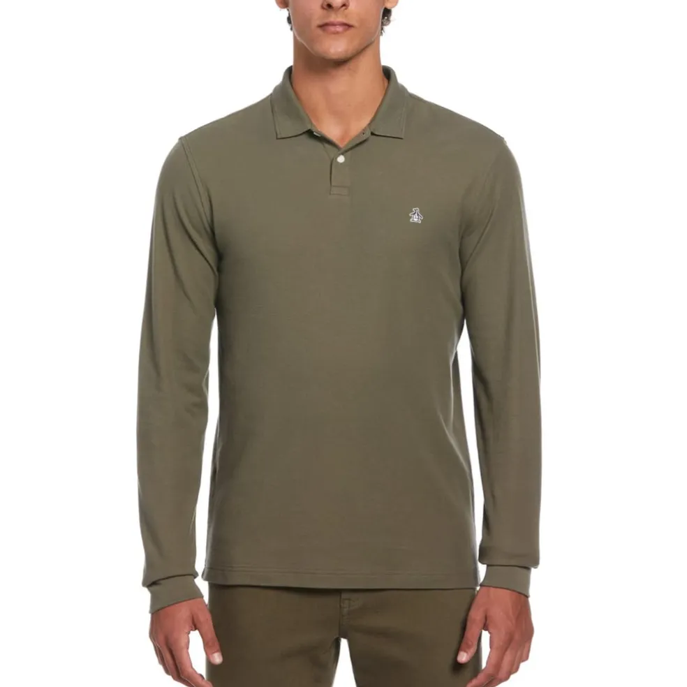 Original Penguin Long Sleeve Regular Fit Polo Shirt in Multi