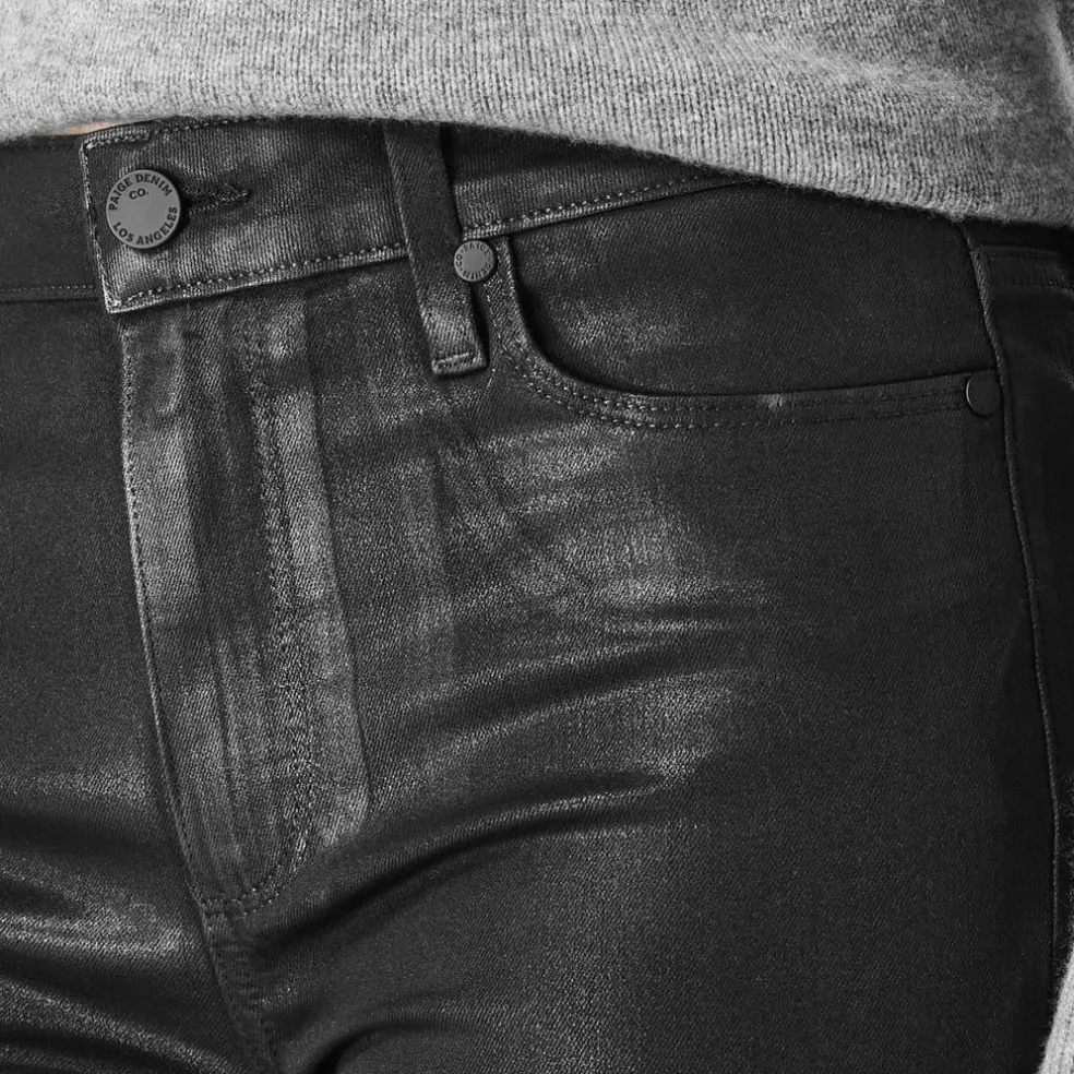 Revise your essential attire with these womens jeans brought to you by Paige. Exposed button and concealed zip-fly fastenings at front. Skinny, high-rise with belt loops and five pockets. Contrast stitching throughout, benefiting from signature stitching at the back pocket.