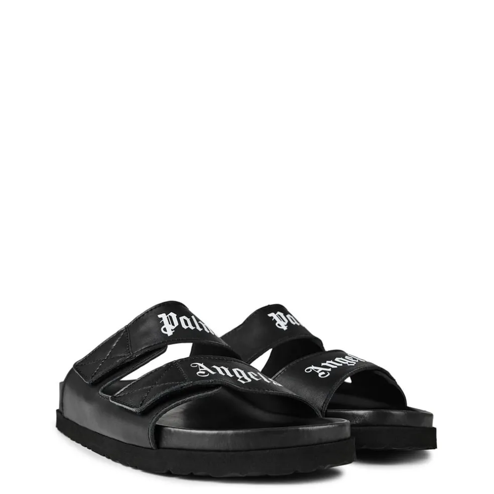 Discover the perfect blend of style and comfort with Palm Angels leather slide. These shoes feature an open toe design, offering a chic look ideal for warm weather. The distinctive lettering graphic adds a unique touch, making them a standout choice for any casual outing.