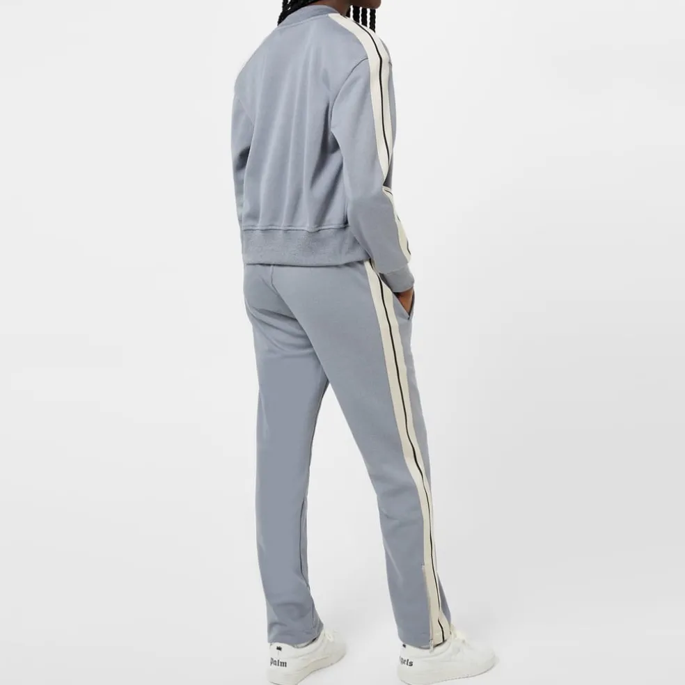 – With side stripe detailing and the iconic logo embroidered at the hip, these trousers exude a sense of exclusivity and contemporary elegance. Dress them down for a casual outing or pair them with the Bomber Track Jacket from