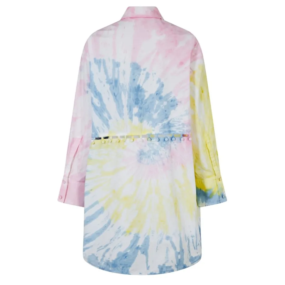 Incorporate fun into your wardrobe with this tie dye shirt by Palm Angels. Personality punctuates this vivacious piece, expertly crafted from 100% lightweight cotton for a luxurious feel that exudes breathabilltiy making for a comfortable wear that’s ideal for your summer wardrobe. Evocative of 1960’s. the iconic Tie Dye style is poured over this piece for a bright, playful appeal that celebrates life, it’s blend of pastel yellow, blue and pink for a feminine touch this look is ideal for effortlessly adding colour to your daily ensemble or to stand out at your next festival. Offering a V neckline with a shirt collar and tie this piece is intricate, exuding eye catchiness, whilst the long sleeves add a practical element. Punctuated by the embellished palm angels logo for a prestigious finish. Machine wash according to care instructions.