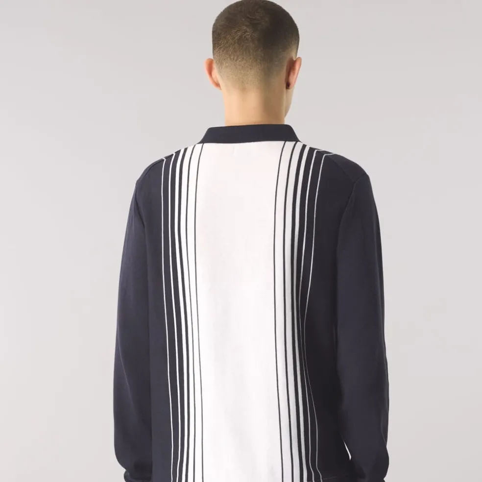 This Pretty Green top from the semi-formal collection features a regular fit with a polo collar and button closure. The knit fabric is adorned with a vertical stripe pattern, adding a touch of sophistication. A subtle logo embellishment completes the design, making it a versatile choice for various occasions.