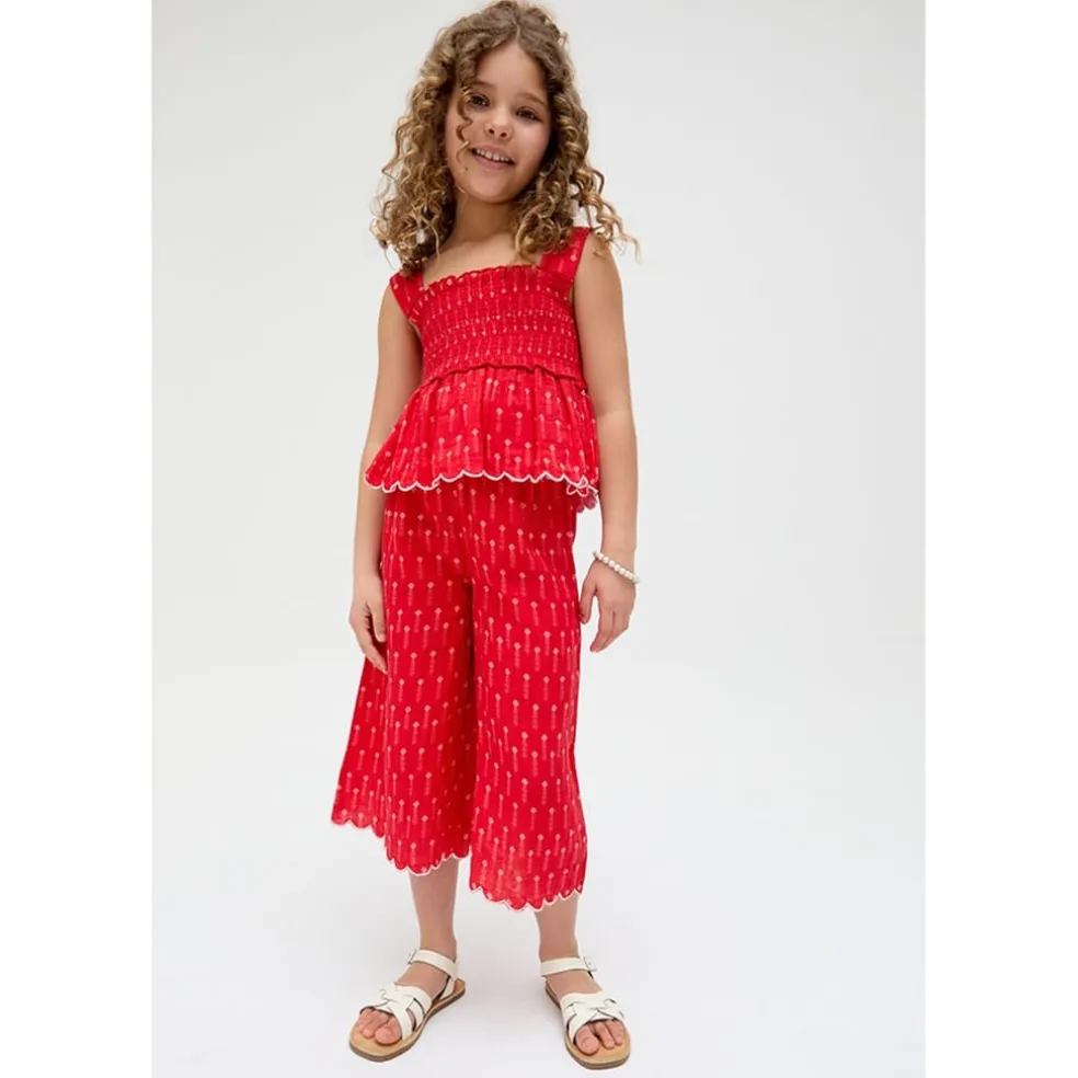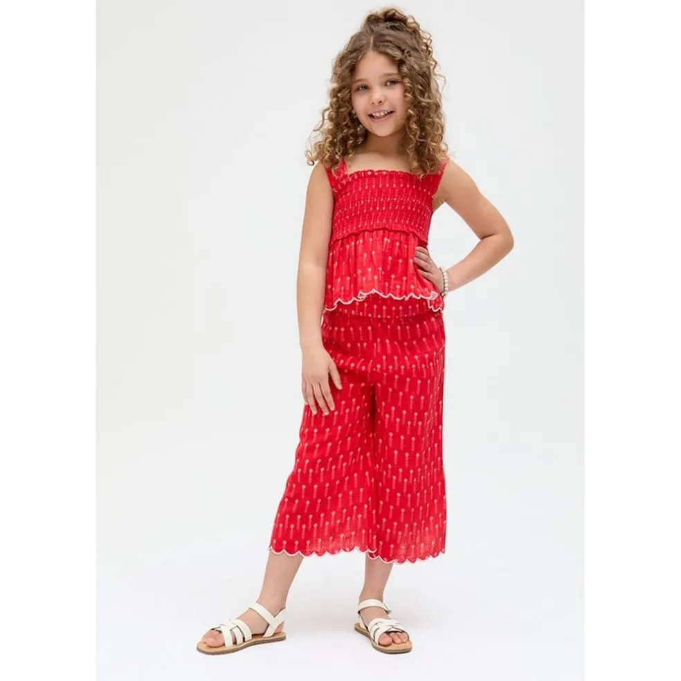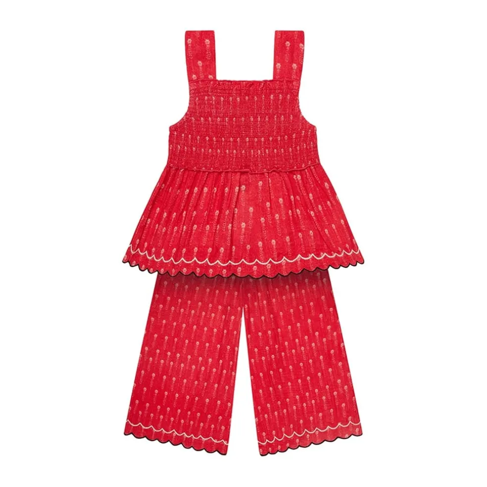 The Sia shirred co-ord set is a vibrant and stylish addition to your little one’s wardrobe. Featuring a playful floral print against a red base, this co-ord set brings a touch of fun and sophistication to any outings. The shirred detailing provides a comfortable, stretchy fit, ensuring all-day comfort, while the lightweight fabric keeps your child cool in the sun.