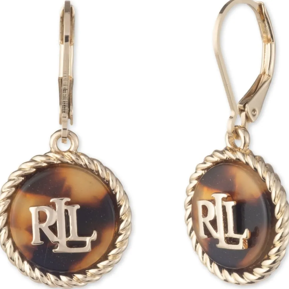The signature Lauren Ralph Lauren logo on these drop earrings is a timeless feature for the brand and is highlighted against the elegant tortoiseshell background. A perfect staple for everyday wear this season