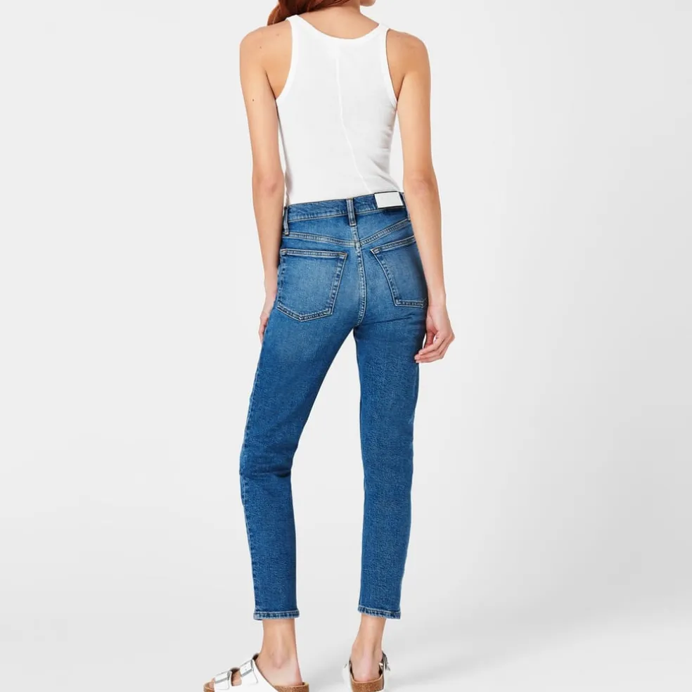 – Designed as a modern interpretation of the beloved skinny silhouette, these button-fly jeans feature a cropped inseam that adds a contemporary touch. Made from premium denim with added stretch, these ankle-length jeans ensure a comfortable fit that moves with you throughout the day. The high-rise fit effortlessly elongates the legs while providing a flattering silhouette that hugs the curves in all the right places. Designed with the traditional five-pocket construction, carrying your everyday essentials is effortless, while the belt loops further enhance their versatility, making them an