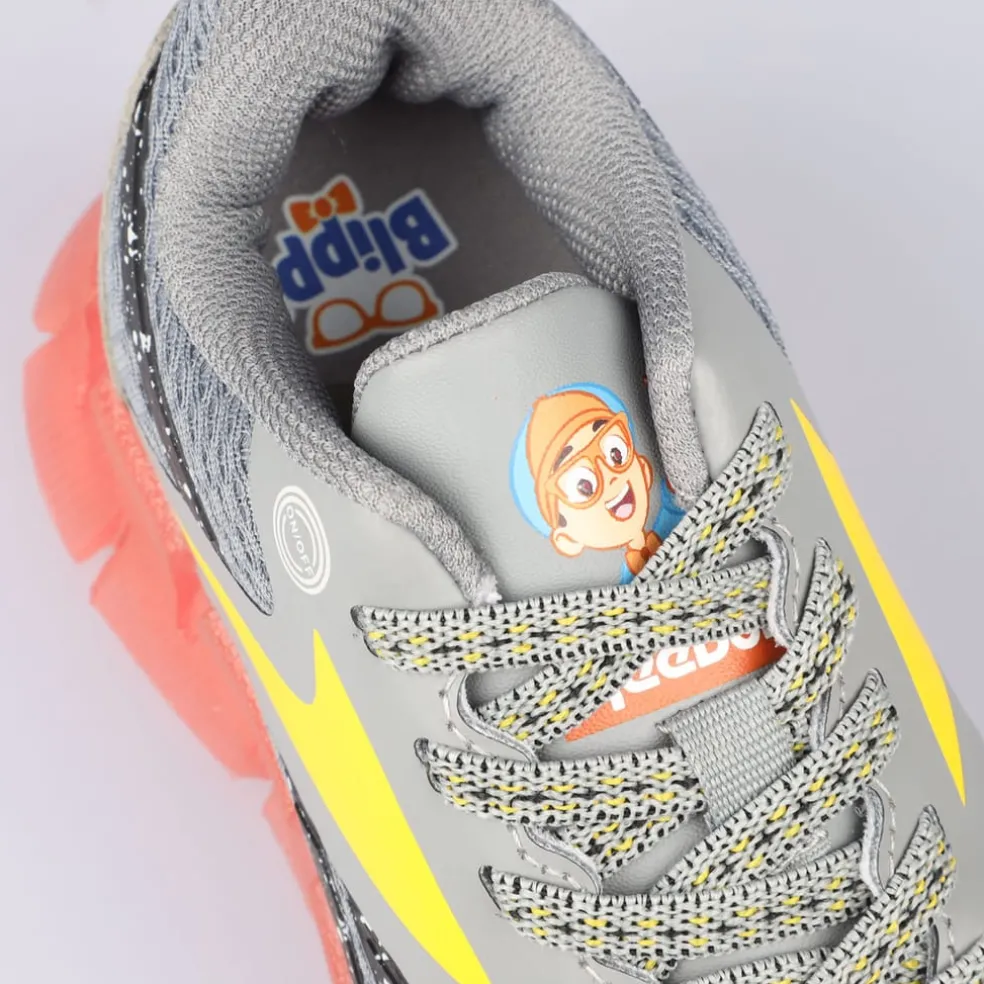 – Rubber with step-activated LED midsole lights with on/off switch.