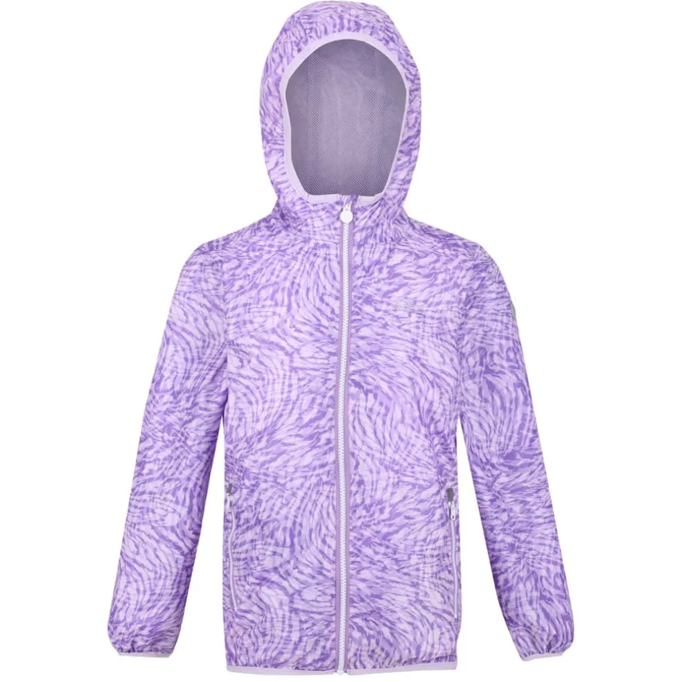 Regatta Juniors Printed Lever Waterproof Jacket in Purple