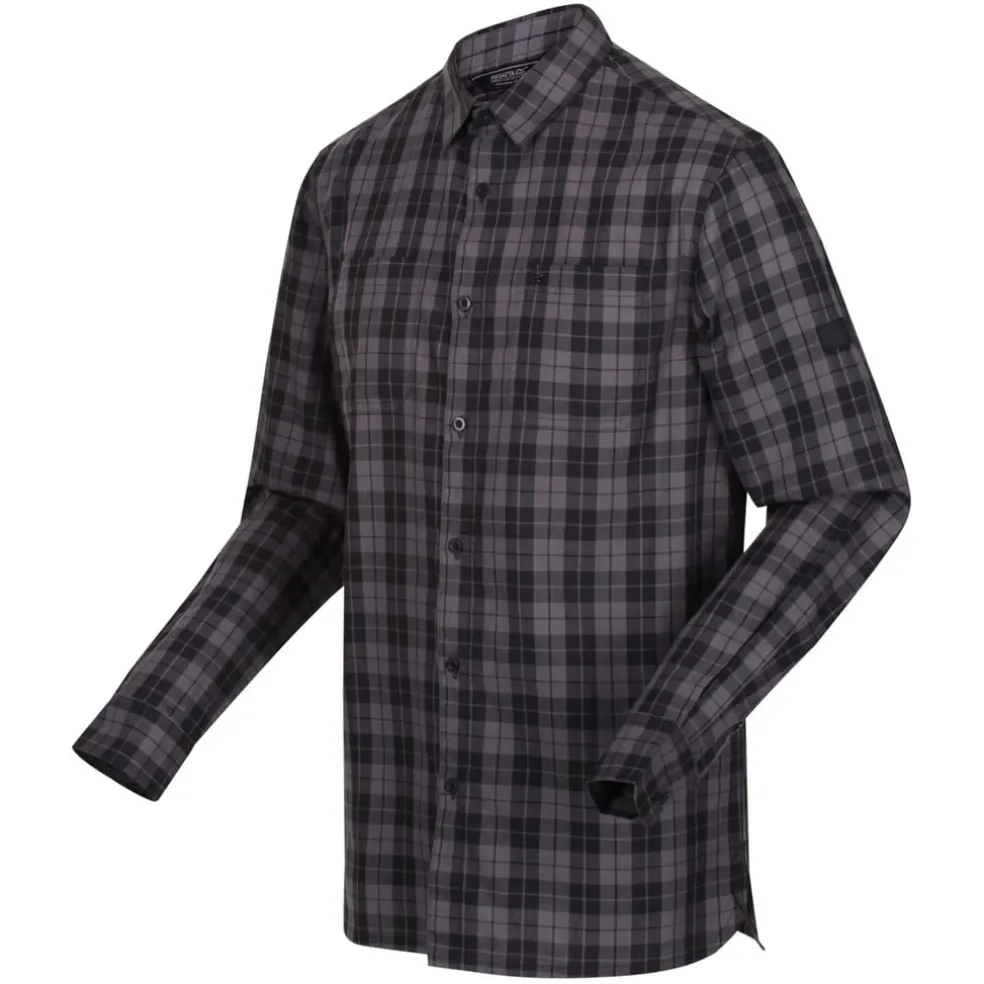 Regatta Lance Organic Cotton Long Sleeve Shirt in Black Grey