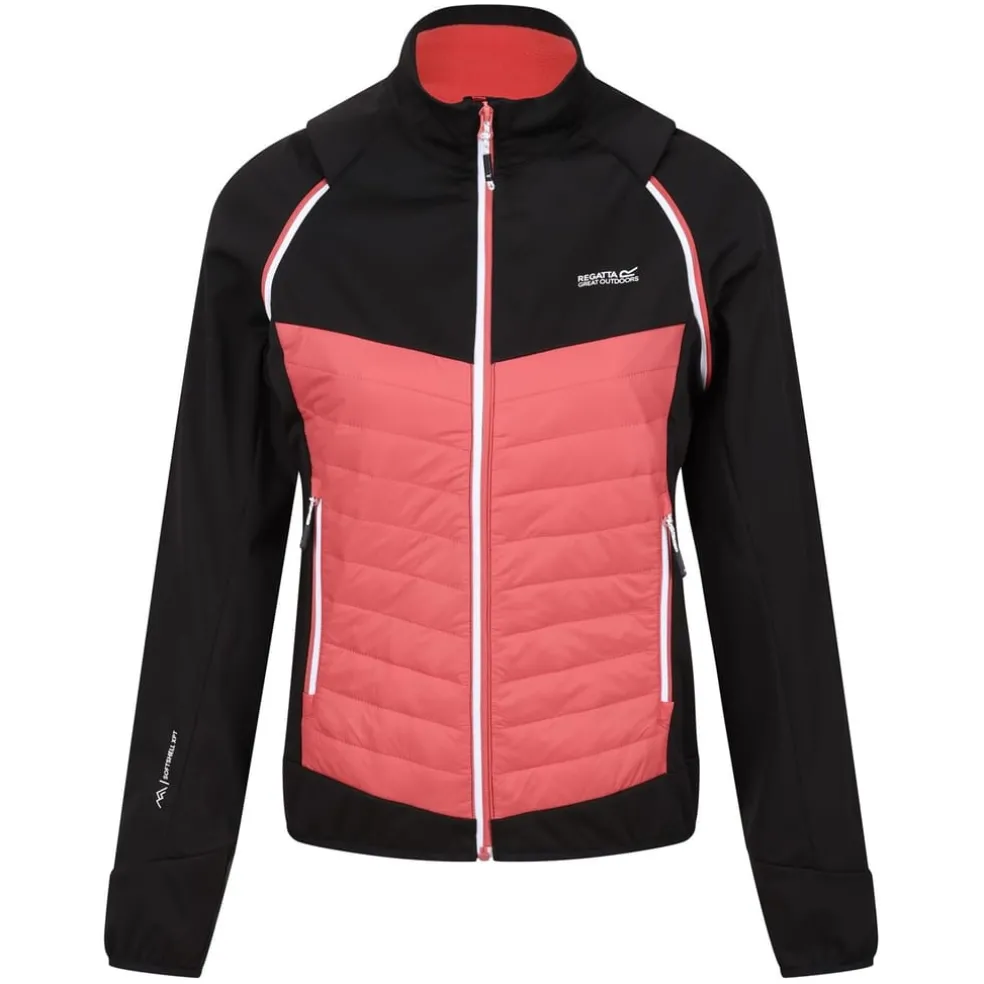 This Regatta softshell jacket from the activewear collection features a mock neck and a straight hem. Designed with a regular fit, it includes a zipper closure and a color block pattern. The jacket is embellished with a logo, reflective ribbon, and zipped pocket, offering both style and functionality.