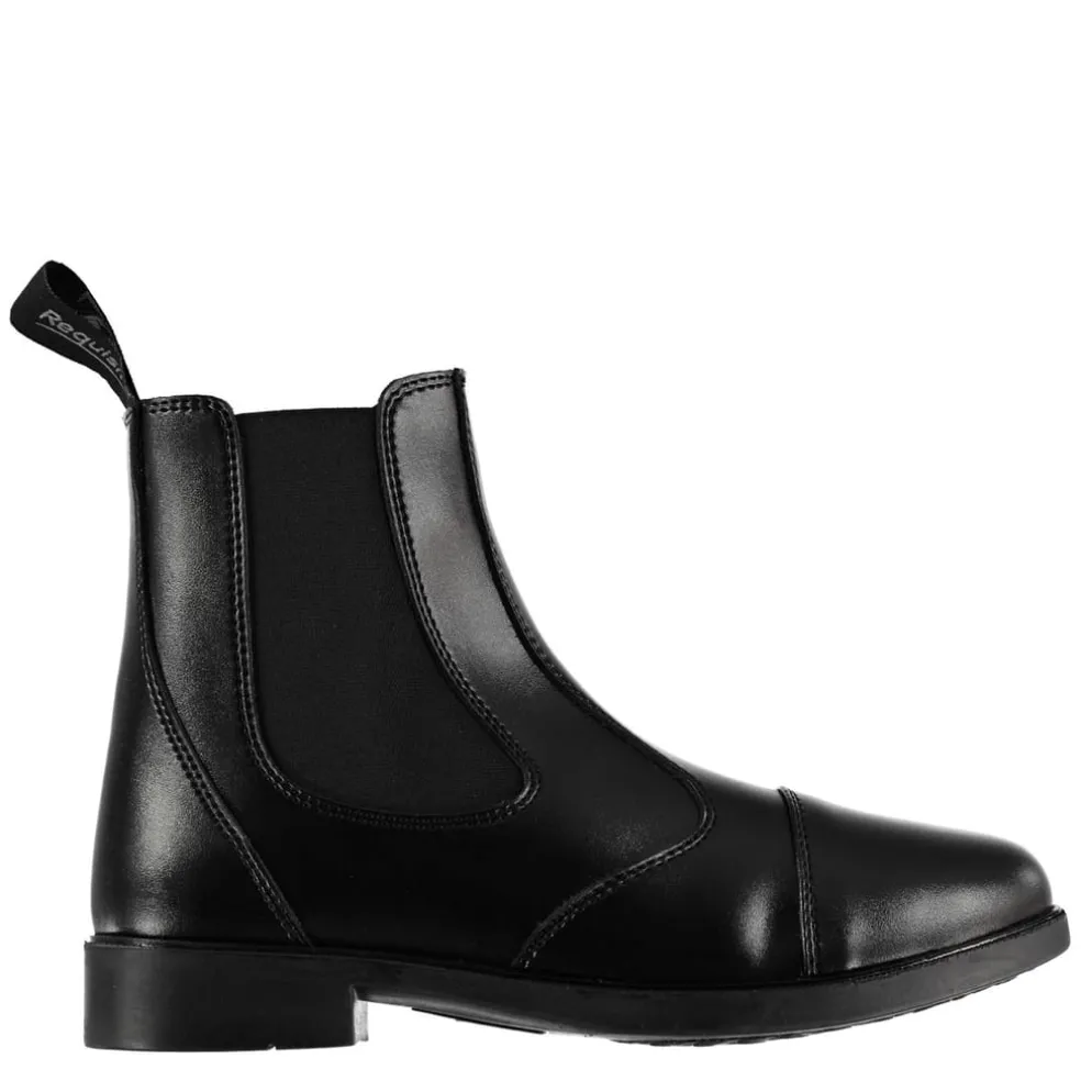 – These pull-on boots feature easy care synthetic leather uppers, hard wearing rubber moulded soles, elasticated side panels for an individual fit and pull on tabs for ease of fitting. These jodhpur boots prove that style and practicality doesn’t have to cost the earth!