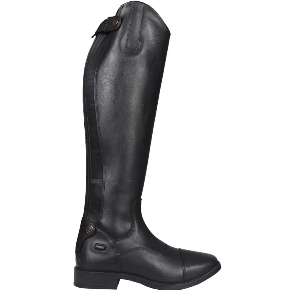 Requisite tall riding boots with a zipper closure at the back. Press stud on leather flap at bottom and top. The foot section is European bovine leather and the shaft is synthetic soft PU, making the boots extremely comfortable for horse riders. These riding boots are very much suitable for everyday horse riding and are designed and made to take care about the rider’s comfortability as well as good performance. These affordable boots are a must buy for all horse riders.