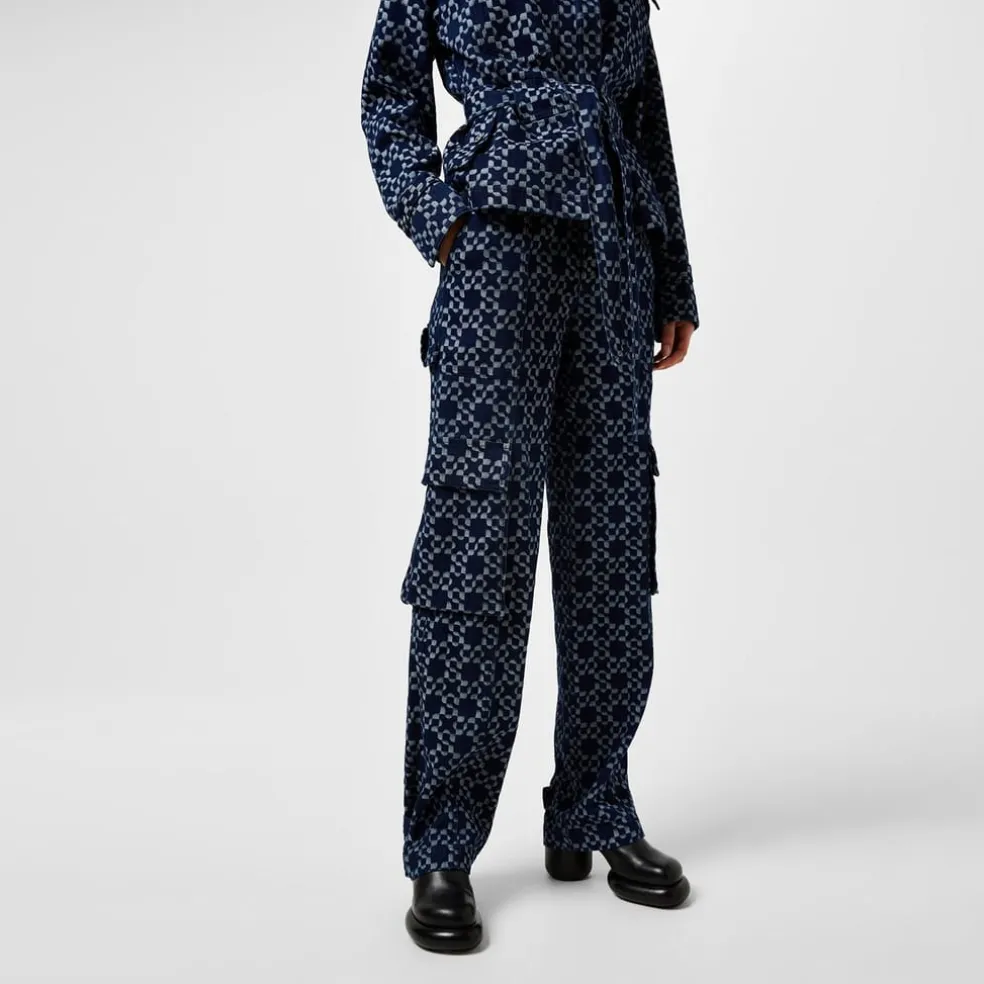Whether you’re attending a high-profile event or simply exploring the city, the Santo Cargo Trouser fuses modern appeals with a contemporary edge. Meticulously crafted from a pure cotton fabrication, the straight-leg silhouette offers a classic yet modern aesthetic, ensuring versatility no matter the occasion. Boasting an all-over abstract pattern for an eye-catching touch, each piece is a unique masterpiece, reflecting individuality and artistry. Secured with a button fastening and zipped fly to the high waistband embodying convenience, the four-pocket design is accompanied by side cargo pockets, bleeding modern utilitarian flairs with a contemporary approach. Complete with button tabs to the cuffs for a structured but edgy appeal, these Jacquard Cargo Pants are the epitome of elevated style.