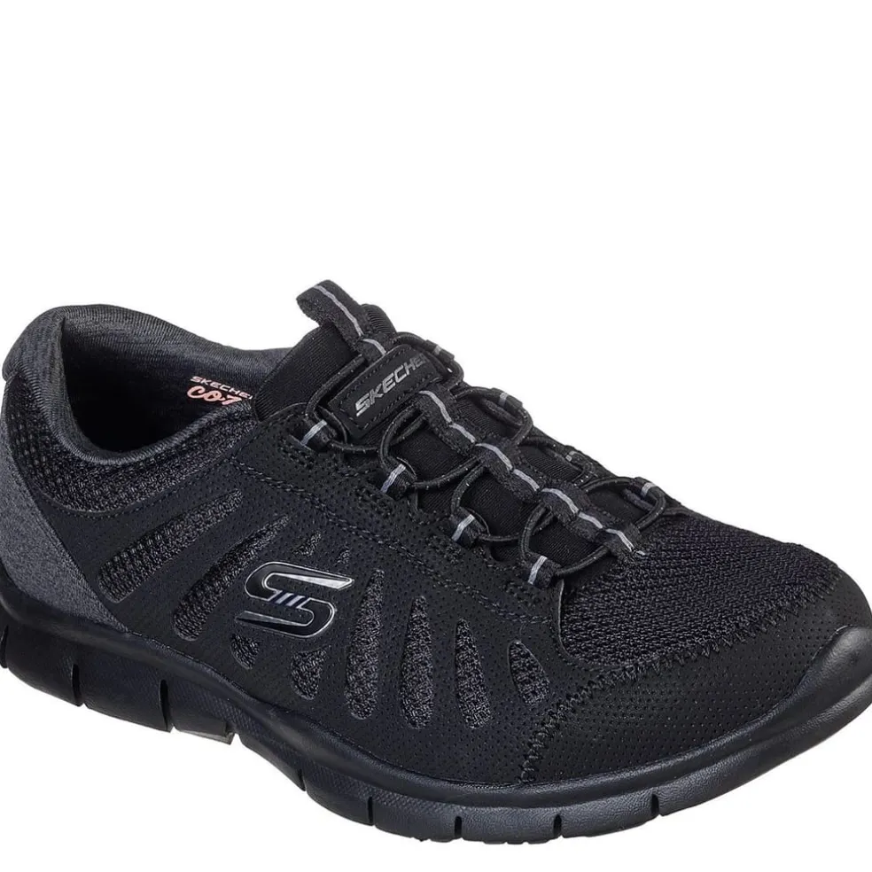 The Ladies Skechers Gratis CC Trainers are perfect for everyday wear, featuring elasticated laces along with air cooled memory foam insole for a cool, comfortable and secure fit. Cut out detail across the upper along with stitched detail for a stylish look, completed with the Skechers branding.