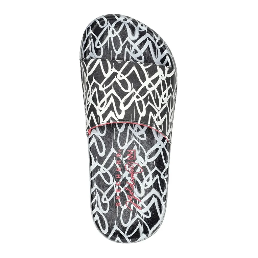 Skechers James Goldcrown Heart Print Slides Girls in Black