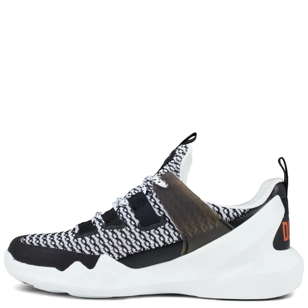 Elevate your casual footwear with these urban explores, the DLT-A Trainers by Skechers are crafted from a knit-mesh fabric for the upper and sit on a flexible, textured traction sole. The pair feature an air cooled memory foam cushioned insole for added comfort, supportive midsole that is light and shock absorbent, finished with eyelets and lace up closure. The pair is completed by the iconic Skechers logo to the tongue and DLT-A to the back of the heel.