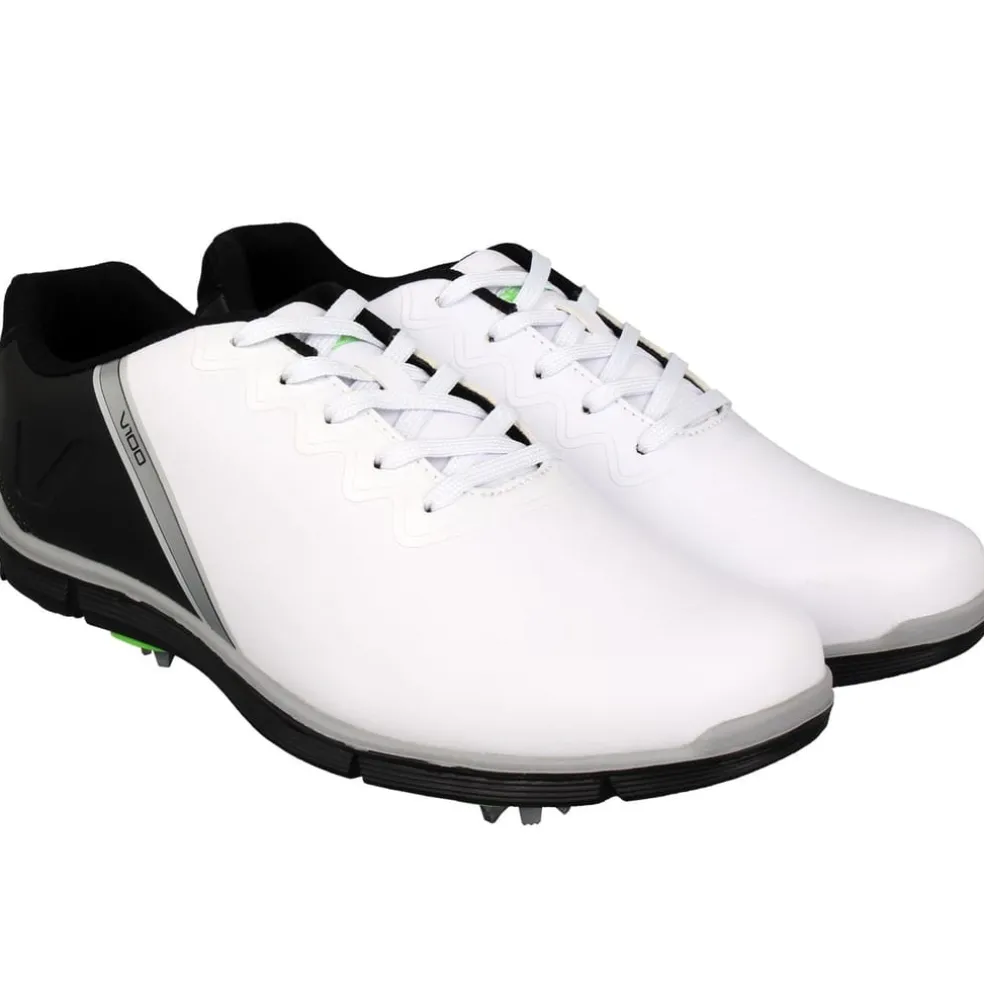 The Slazenger V100 Mens Golf Shoes are perfect for hitting the green, crafted with a shaped ankle collar and lace fastening for a secure fit, a cushioned insole coupled with a moulded outsole and softspikes provide fantastic traction, completed with the Slazenger branding across the side.