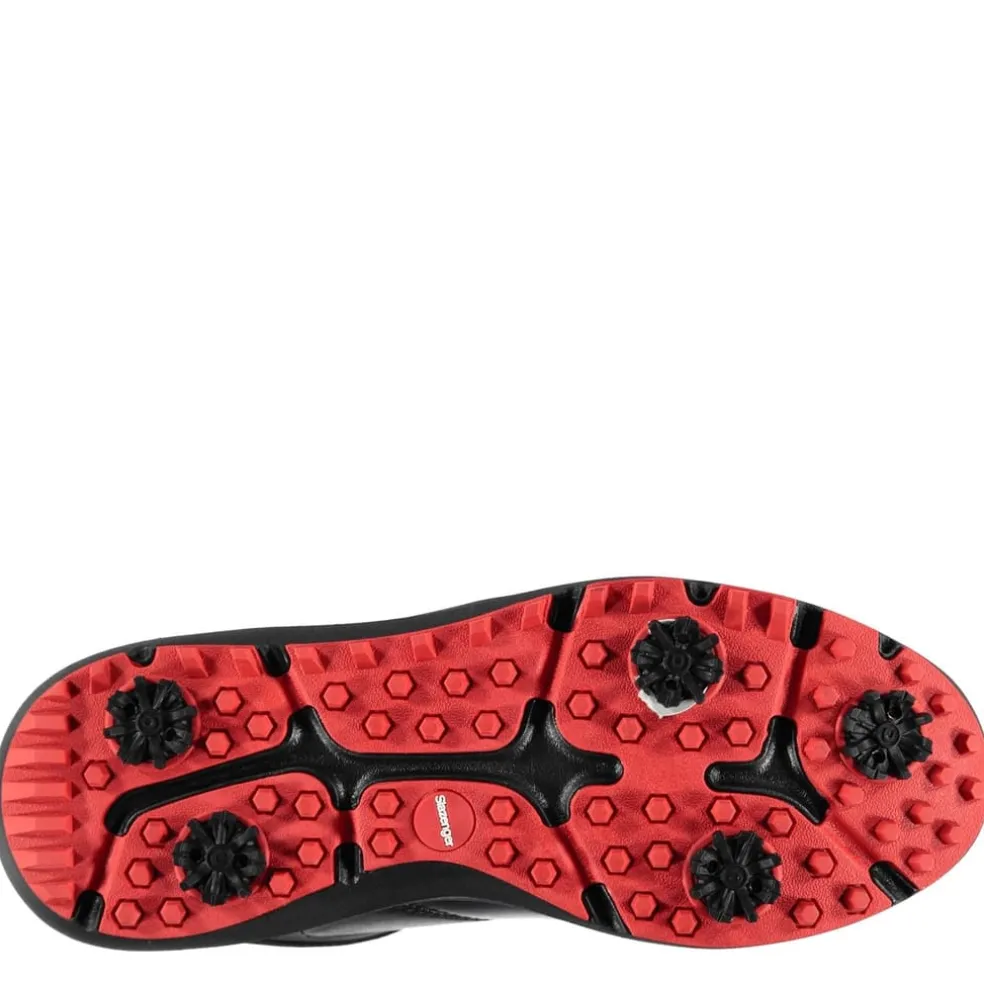 The Mens Slazenger V300 Mens Golf Shoes are perfect for the fairway, crafted with a spikeless sole that provides fantastic traction, along with a shaped ankle collar and lace fastening for a secure fit, completed with the Slazenger branding.