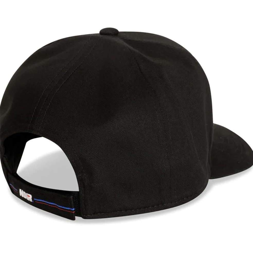 Discover the Societe Noir snapback cap, a stylish addition to your collection. This cap features a snap-back closure for a comfortable fit. The design includes an embroidered logo, complemented by graphic print elements such as lettering and a number on the back, adding a unique touch to your look.