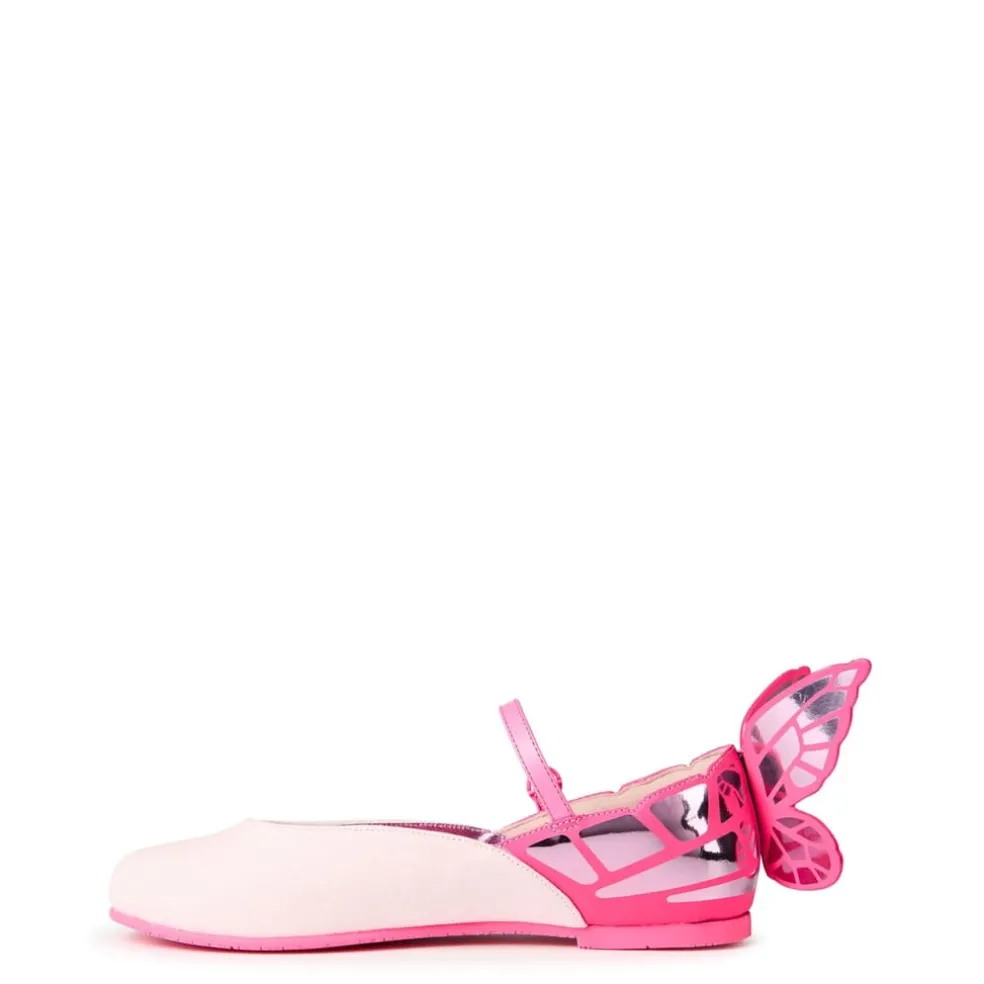 – Celebrated for their whimsical styles and enchanted shoes, Sophia Webster fuse fun and fashion, expressed in these intricate Heavenly ballerina shoes made for your little one. These magical shoes exude a fairytale like charm that your little princess is sure to love. Perfect for birthday parties and playdates these ballet pumps offer a fun touch to their occasion attire,