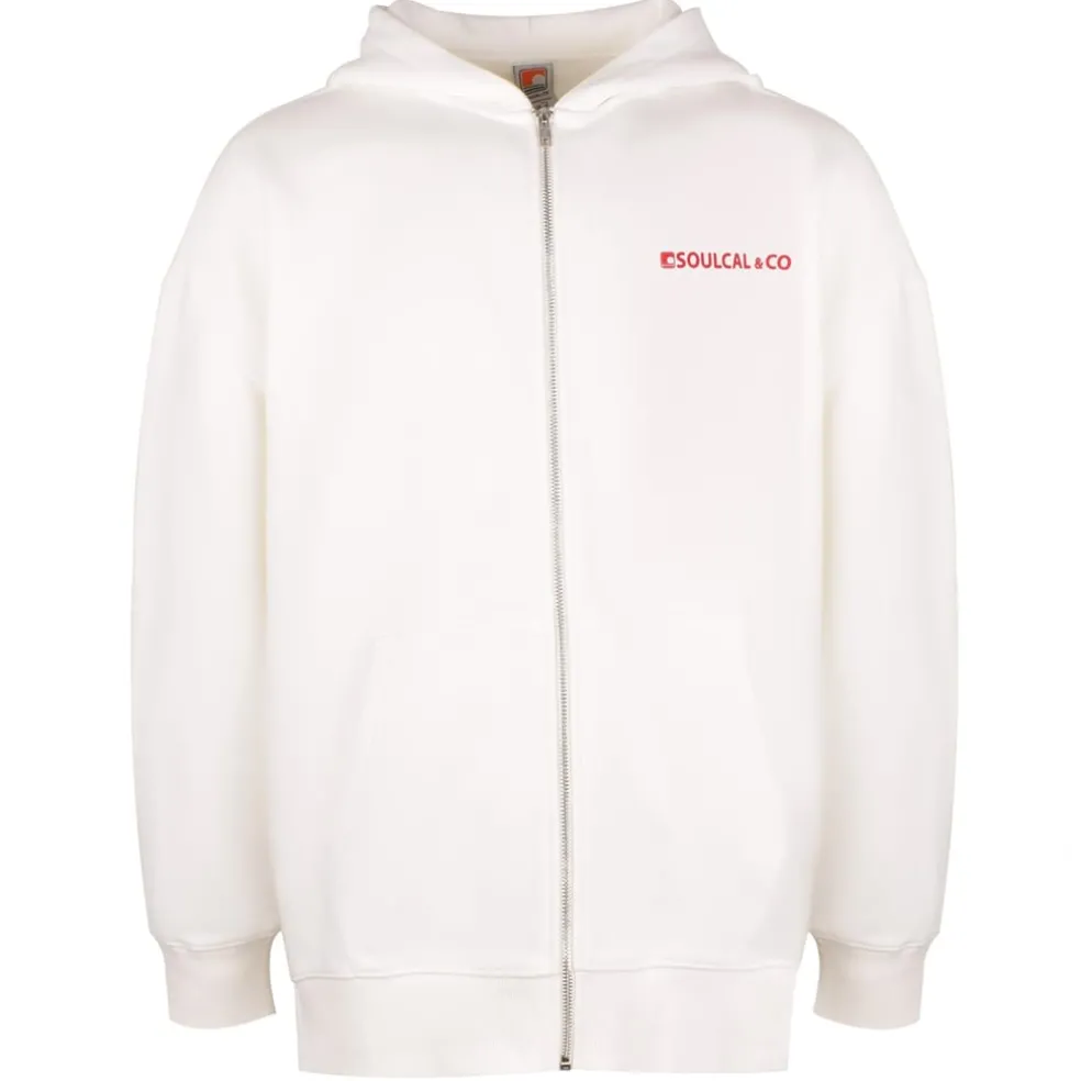 This Soulcal top from the outerwear collection is designed for summer. It features a hood and a convenient zipper closure. The long sleeves and regular fit ensure comfort, while the graphic print adds a stylish touch. A logo embellishment completes the look, making it a versatile addition to your wardrobe.